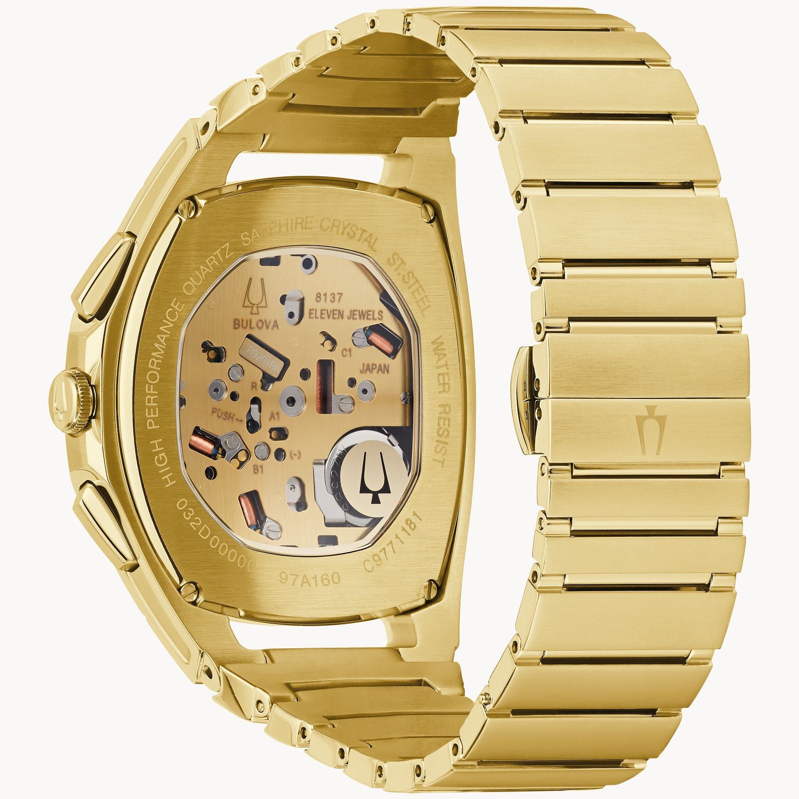 La emoción revolucionaria del primer movimiento de cronógrafo curvo del mundo continúa, ya que Bulova vuelve a imaginar lo que debería ser un reloj. En 2020, una nueva caja Curved Tonneau subraya las líneas fluidas de la colección CURV, al tiempo que ofrece una nueva estética distinta, una vez más, haciendo una declaración de diseño respaldada por la innovación tecnológica. Cuenta con una caja en forma de tonel de acero inoxidable en tono dorado y una esfera de champán terminada con un cristal de zafiro curvo y un revestimiento antirreflectante. Se combina con una pulsera de acero inoxidable en tono dorado y un cierre de botón desplegable para un diseño sin costuras. Este reloj de lujo para hombre se sentirá tan innovador y único en el futuro como lo es hoy, un accesorio perfecto para cualquier ocasión.